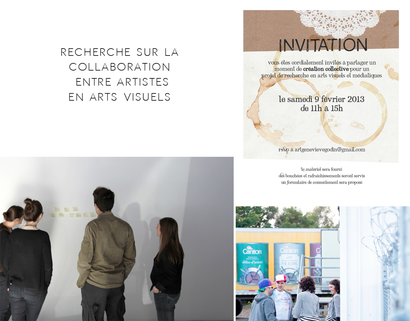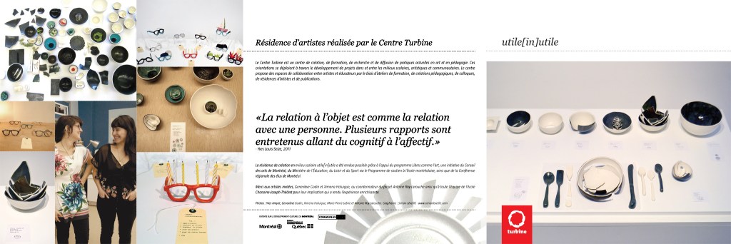 La collaboration fait partie de tous les aspects de mon travail de création en arts et en design, et c’est ainsi que je considère mes expériences d’enseignement et de médiation culturelle : du travail artistique collaboratif. Étant enseignante spécialiste en arts brevetée par le MEES, je présente ici des projets spéciaux réalisés par le réseau éducatif canadien. Collaboration is part of every aspect of my creative work in arts and design, and I also consider my teaching experiences and cultural mediation as collaborative artistic work. Being a teacher specialist arts patented by MEES, the work presented here emerged from special projects in the Canadian education system.