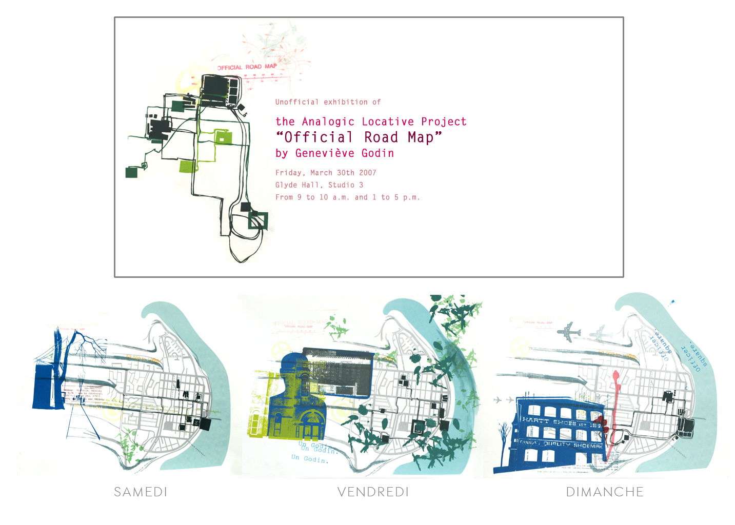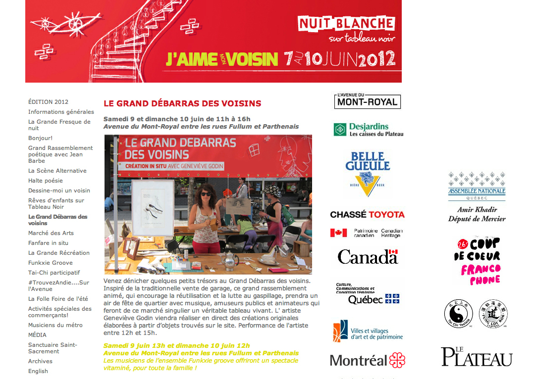 Création d’activité de médiation culturelle pour l’Exposition Le Monde à bicyclette en collaboration avec l’organisme Encore du monde à bicyclette et la Maison de la culture Marie-Uguay, 2022. Projet de médiation culturelle avec Arts nomades, une collaboration entre l’artiste Julie Desquand, la Tohu, le Cirque du soleil et la CSDM, 2019.Projet de médiation culturelle pour La virée classique, Place des arts. Collaboration avec Amélie Saffré. Les notes créées et découpées ont été performées par des musiciens professionnels, 2017.Activité de création en continu créée pour le MBAM (parmi plusieurs autres!), 2015.Recherche théorique sur la collaboration entre artistes professionnels, 2010-2014.Travail, monobande vidéo, 10m18s, 2013.Le grand débarras des voisins de la Nuit blanche, projet d’art relationnel, 2012.Le grand débarras des voisins, projet d’art relationnel, 2012.Le grand débarras des voisins, projet d’art relationnel, 2012.Présentation de l’oeuvre collaborative Petits au CDEX de l’UQAM, 2011.Production de Petits en collaboration, 2011.Carton de présentation de la résidence d’artiste utile[in]utile, 2011.Résidence d’artiste utile[in]utile avec Ximena Holuigue, une collaboration entre le Centre Turbine et la CSMB, 2011.Résultat de la résidence d’artiste utile[in]utile exposée au Centre culturel de Verdun, 2011.The 24 hours Art Project, projet de cocreation en arts visuels avec Davide Di Saro et Dan Gies, 2010.Official Road Map, projet d’artiste et de médiation culturelle créé à Fredericton (NB) et au Banff Centre for the arts (AB) 2006-2008.Official Road Map, projet d’artiste et de médiation culturelle créé à Fredericton (NB) et au Banff Centre for the arts (AB), 2006-2008.Official Road Map, détail, projet d’artiste et de médiation culturelle créé à Fredericton (NB) et au Banff Centre for the arts (AB), 2006-2008.Fais ta valise!, projet de médiation culturelle en collaboration avec la CSDM, 2006-2008.Fais ta valise!, projet de médiation culturelle en collaboration avec la CSDM, 2006-2008.Créations vidéographiques scolaires pour le Festival des Vidéastes du Manitoba (FVM) à Winnipeg, 2006-2014.Création scolaire en vidéo (FVM : Symphonie de la vie, 5m46s, 2014.Création scolaire en vidéo (FVM): L’emprise de la cadence, 6m18s, 2014.Création scolaire en vidéo (FVM): La mélodie ensorcelée, 6m22s, 2014.