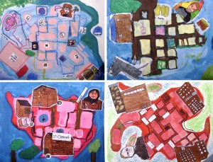 Les enfants ont travaillé sur un projet d’art locatif faisant référence à leur propre environnement et aux souvenirs rattachés aux lieux géographiques.
